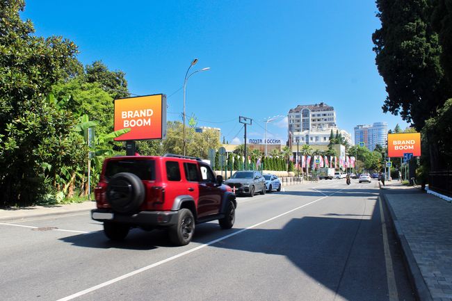 В Сочи локальный BrandBoom реализован на цифровых ситибордах, установленных на Несебрской улице. Они обеспечивают охват людей, следующих в обоих направлениях: к Морскому порту и к Платановой аллее.