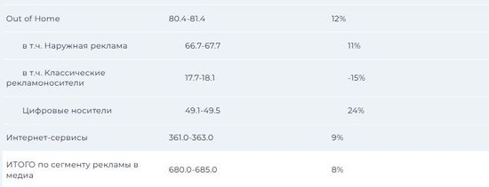 Региональный рекламный рынок в целом в первые три квартала 2025 года также находился в положительной зоне. По итогам девяти месяцев он вырос на 2%, а его объём (без учёта московского рынка) в средствах распространения рекламы по пяти сегментам (видео, аудио, издательский бизнес, наружная реклама и интернет-сервисы) составил почти 93 млрд рублей.